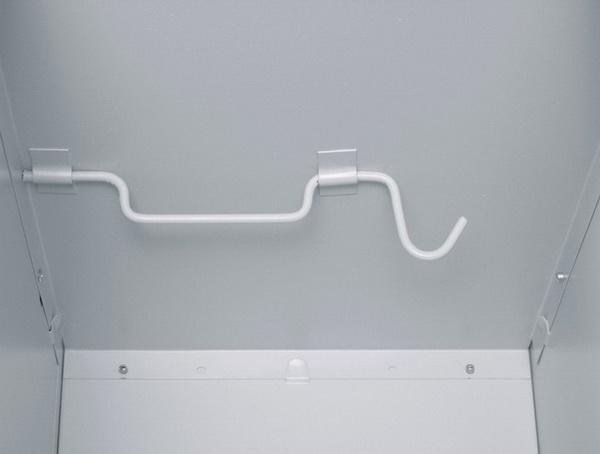 - Кожна секція (осередок) шафи оснащена індивідуальним циліндричним замком фірми EUROLOCKS, скобою для вішалок та гачком;